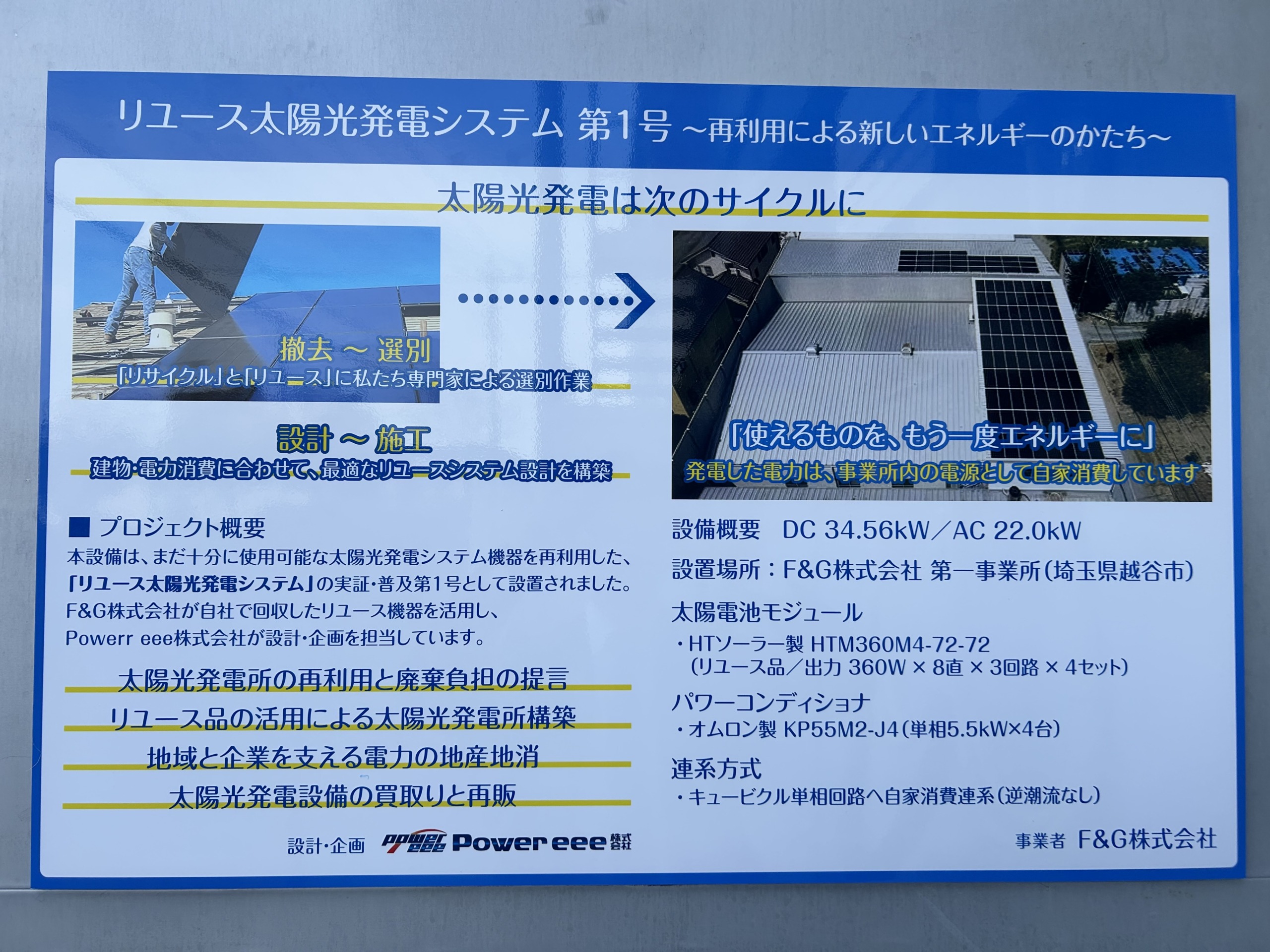 「リユース太陽光発電システム」の実証・普及第1号として設置されました。